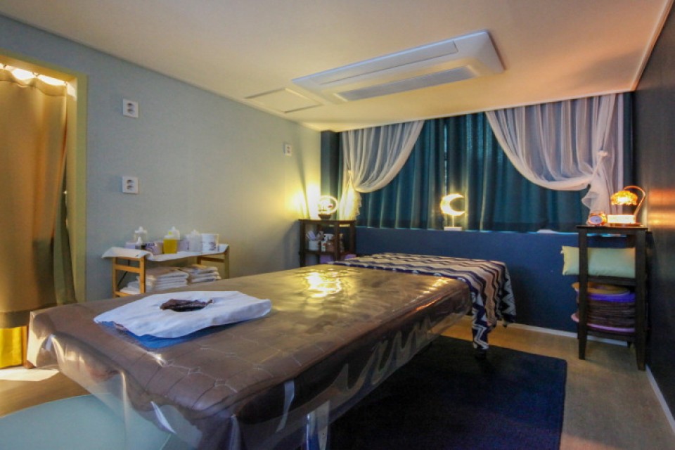 *슈얼테라피 관리 : 아로마 오일을 사용함으로써 피부에 영양공급과 혈액순환을 도와 노폐물 제거, 심신을 감미롭게 이완시키는 관리